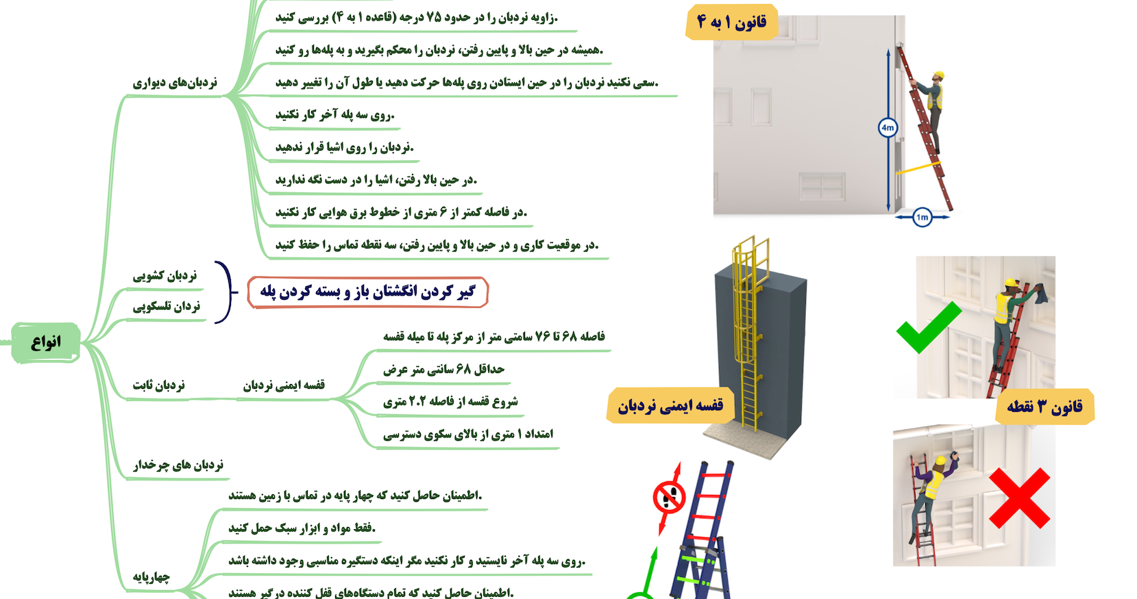 برای مطالعه سریعتر و بهخاطر سپاری بهتر قوانین کار در ارتفاع توصیه میشود آنها را به شیوهای نوین با استفاده از ساختار درخت دانش که در مجموعه HSE vip به شکل مایندمپ ایمنی کار در ارتفاع درآمده است استفاده کنید.