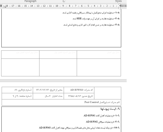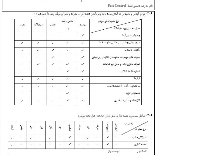 دستورالعمل Pest Control (کنترل افات) بهمراه فرم چک لیست های مربوطه بصورت کامل
