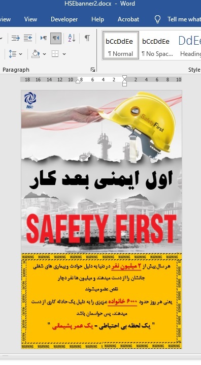 بنر پیام ایمنی فایل به صورت word است و به راحتی میتوانید آن را ویرایش کنید شما میتوانید لوگوی شخصی خود را در این بنر درج و جهت نصب به چاپ برسانید ابعاد این بنر 48*30 است